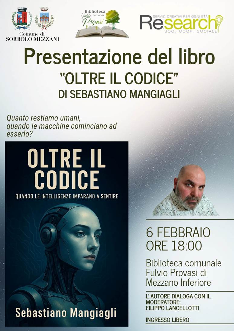 Quanto restiamo umani quando le macchine iniziano a esserlo? Un tema attualissimo, una riflessione profonda sul rapporto tra tecnologia, intelligenza artificiale ed emozioni. Vi aspettiamo alla presentazione del libro un’occasione di confronto aperto e stimolante.“Oltre il Codice” di Sebastiano MangiagliVenerdì 6 febbraioOre 18.00Biblioteca comunale Fulvio Provasi – Mezzano Inferiore L’autore dialogherà con Filippo Lancellotti, per […]