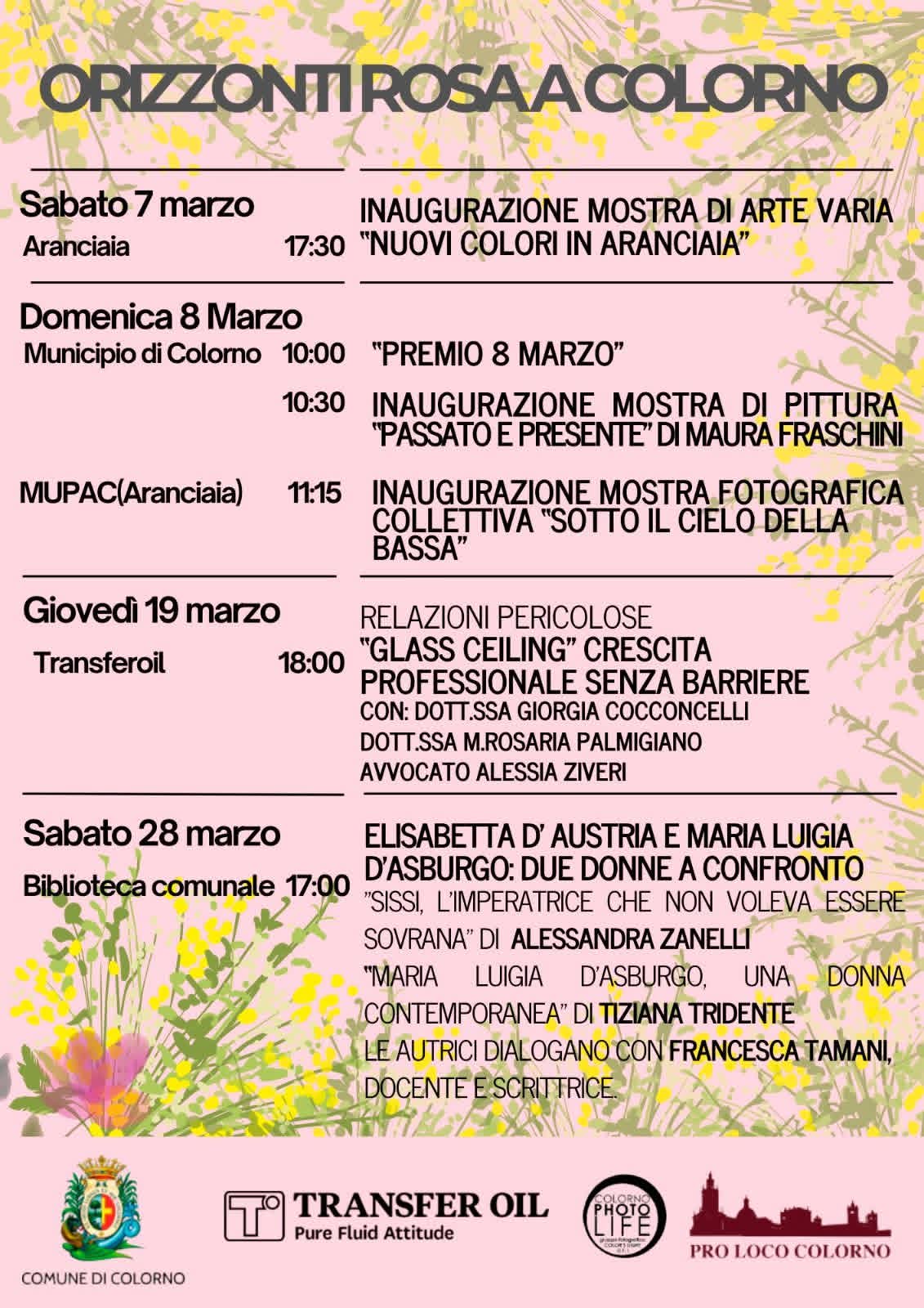 ORIZZONTI ROSA A COLORNO, UN MESE RICCO DI INIZIATIVE, a partire da questo weekend