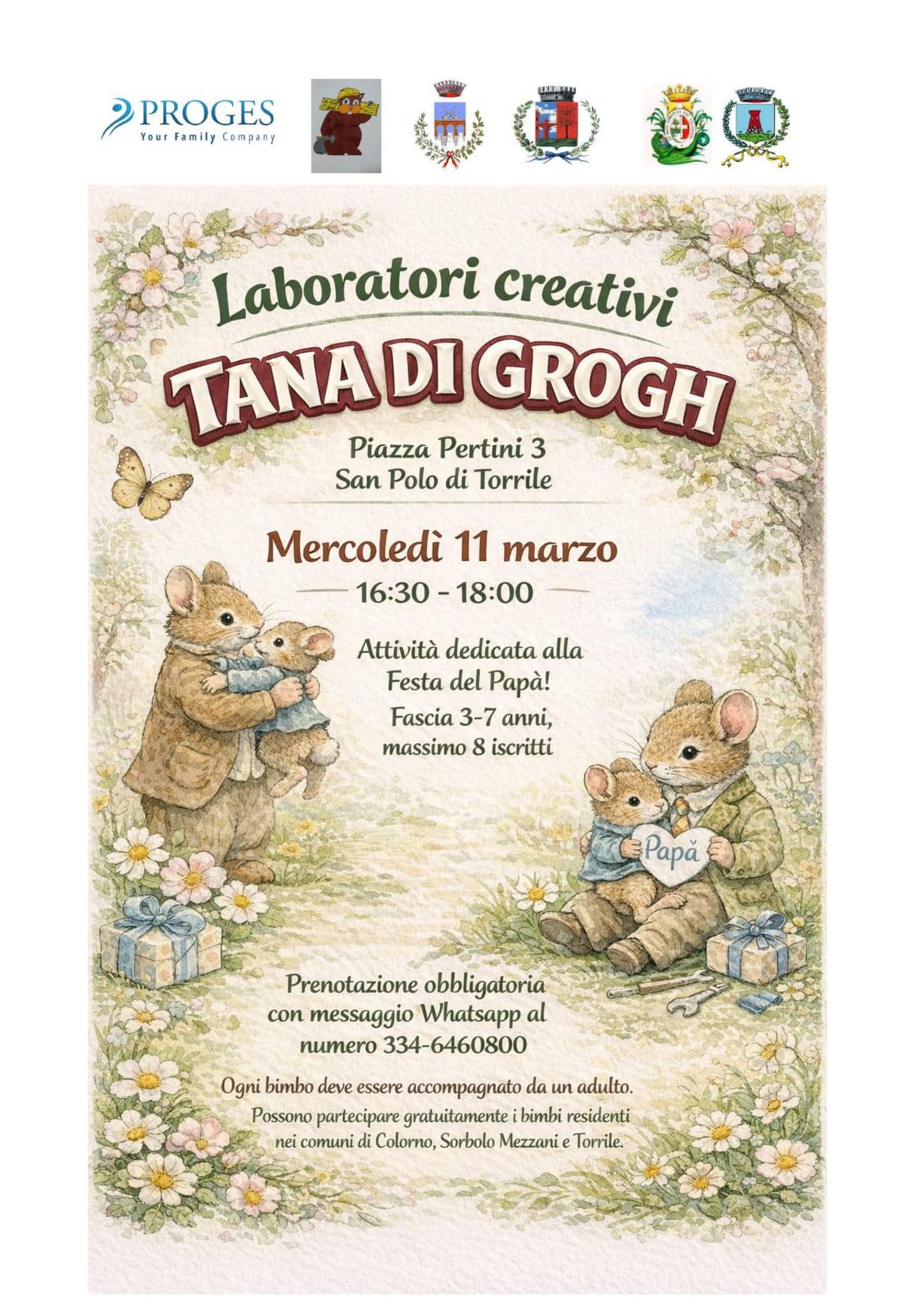 Mercoledì 11 marzo 16.30 – 18.00 Piazza Pertini 3 – San Polo di Torrile Attività per bambini dai 3 ai 7 anni Massimo 8 partecipanti. Ogni bambino deve essere accompagnato da un adultoPartecipazione gratuita per i residenti nei comuni di Colorno, Sorbolo Mezzani e TorrilePrenotazione obbligatoria via WhatsApp 334 6460800