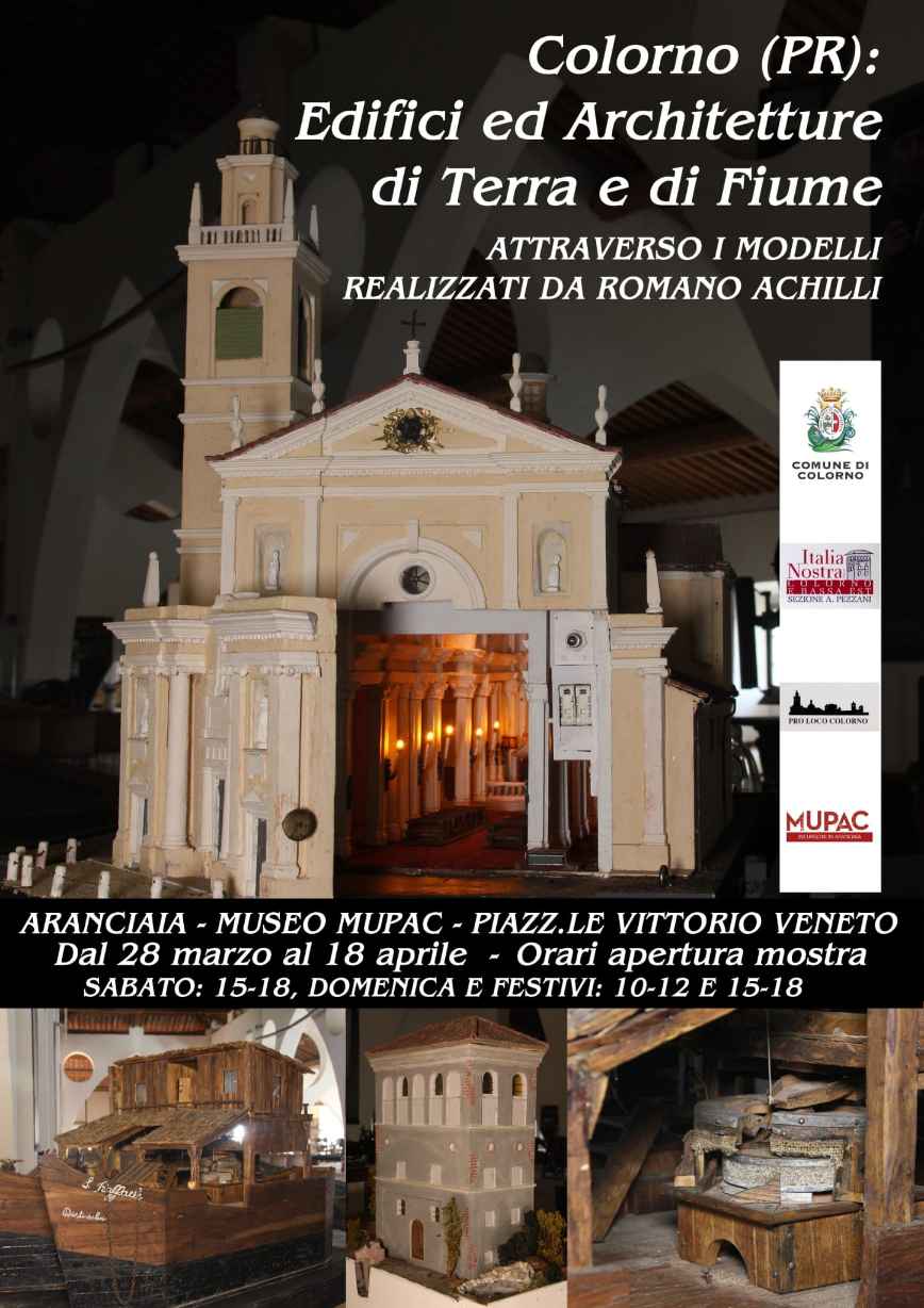 Italia Nostra Sezione di Colorno e Bassa Est “Antonio Pezzani” con la collaborazione del Comune di Colorno, organizza la prima mostra Colorno edifici e architetture di Terra e di Fiume, attraverso i modelli realizzati da Romano Achilli.