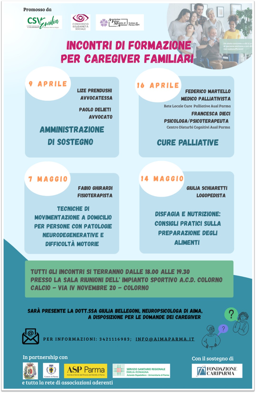 CSV Emilia Romagna, Consorzio solidarietà sociale e AIMA Parma invitano i caregiver di familiari e anzianifragili affetti da patologie cronico-degenerative